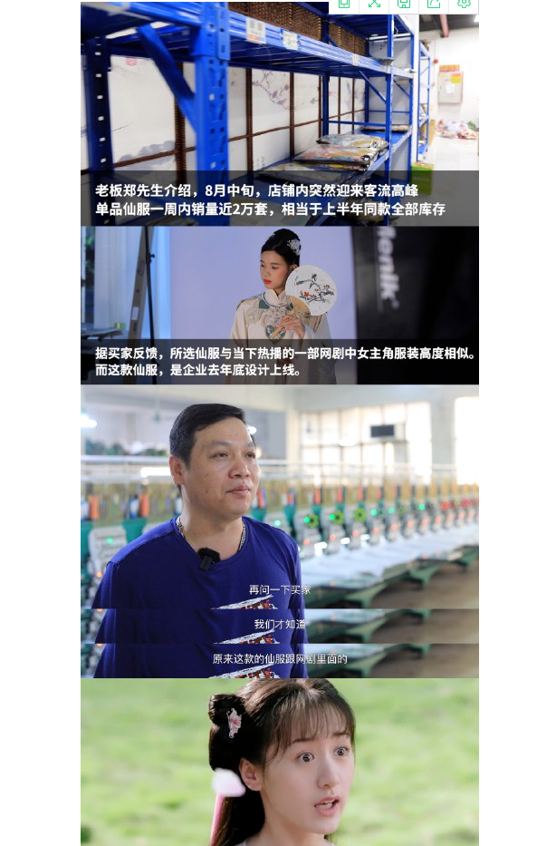 据头条新闻报道,伴随《琉璃》热播,广州某汉服商家,店内璇玑同款吸引万千汉服爱好者“剁手”,一周内销量飙升至2万+,相当于上半年单品全部库存,成功帮助疫情期间濒临倒闭的商家起死回生。